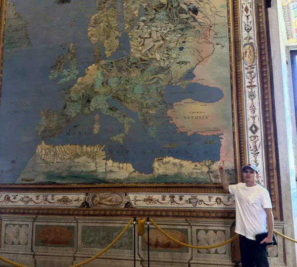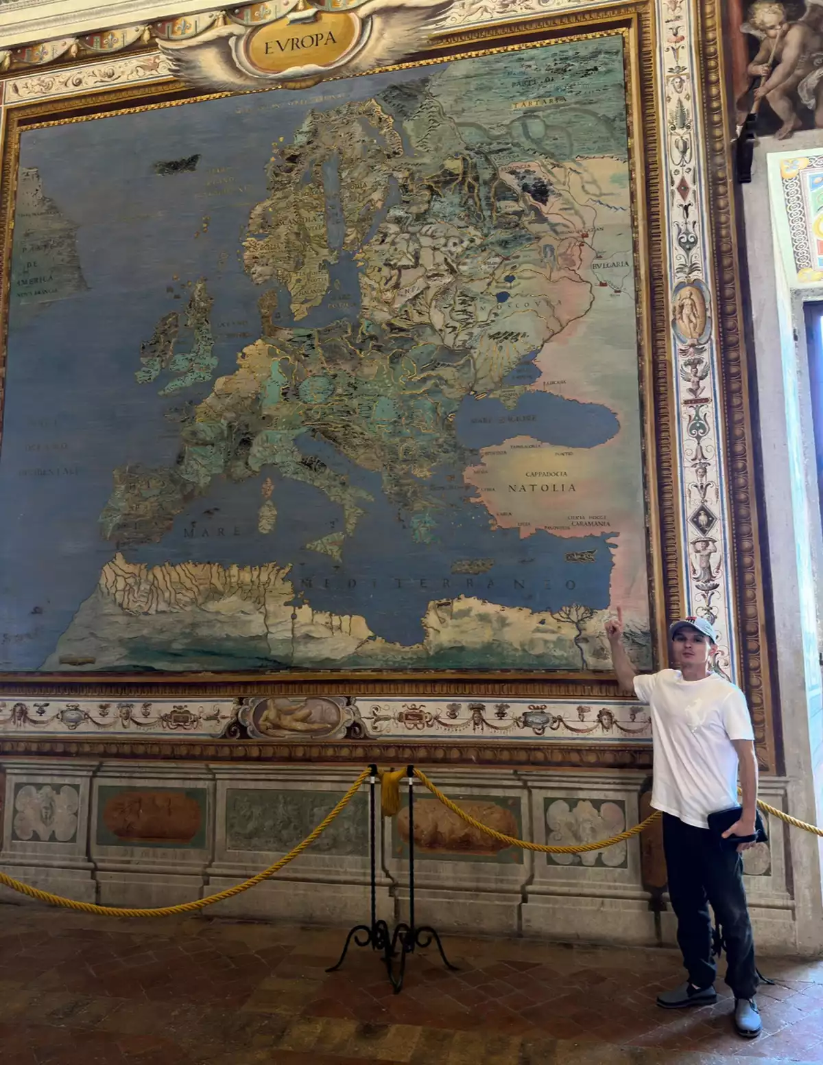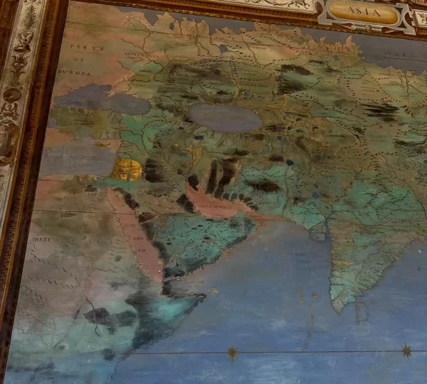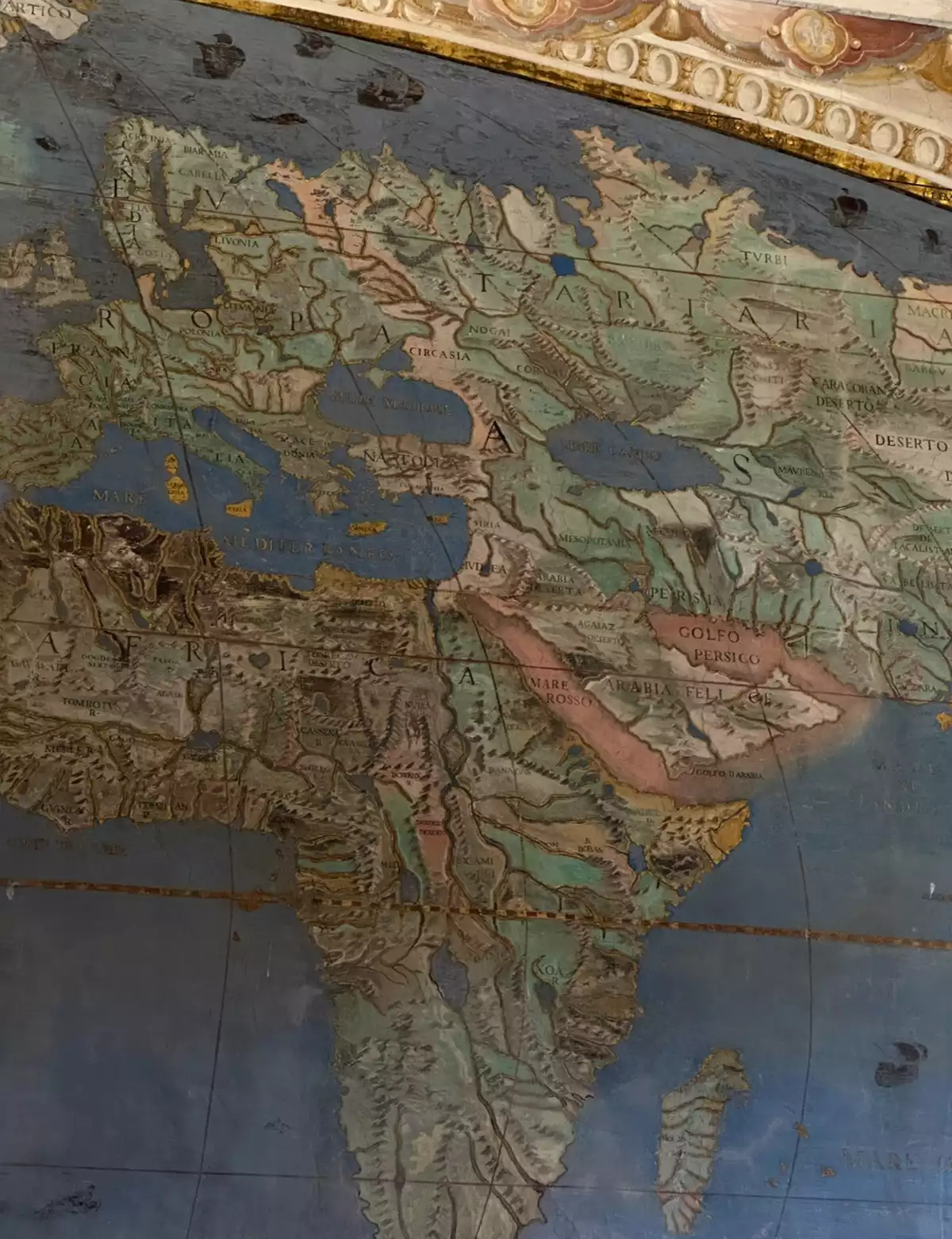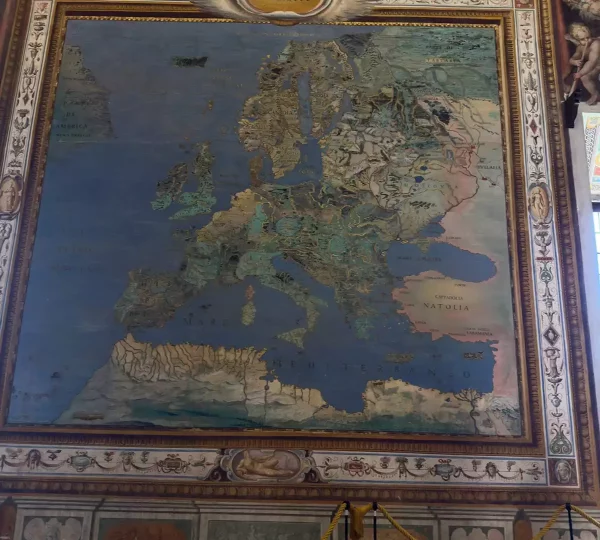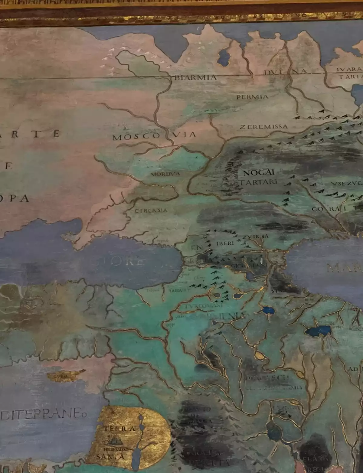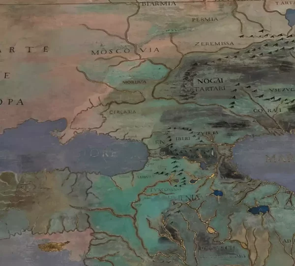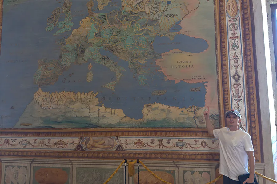 Villayı ziyaretimiz sırasında, benzersiz tarihi haritaların bulunduğu bir salonda bulunduk. Bu haritalar, Rönesans dönemi olan 16. yüzyıla tarihlenmektedir. O dönemin coğrafi ve politik anlayışlarına dair değerli bir bilgi kaynağıdır. Bu haritalardan üçünde — dünya haritası, Avrupa haritası ve Asya haritasında — Çerkesya’ya yapılan referanslar bulduk. Bu bulguları dikkatlice kameraya kaydettik, bu da araştırma materyalimize önemli bir katkı sağladı.